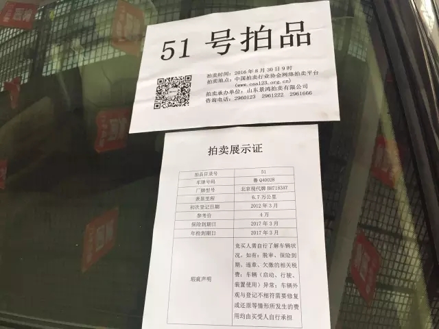 ▲等待拍卖的公车 价格已全部公示