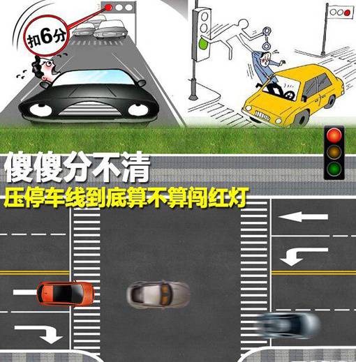 但是这样不算闯红灯,和经历一相同,及时刹车,保持不动,都不算闯红灯。此条不同在于——“全越线停车”,不属于闯红灯,但是要扣2分。